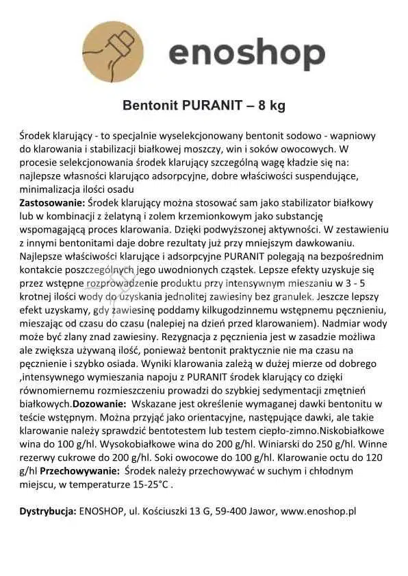Bentonit PURANIT 8 kg – wysokowydajny środek klarujący i stabilizujący białka w winie i sokach