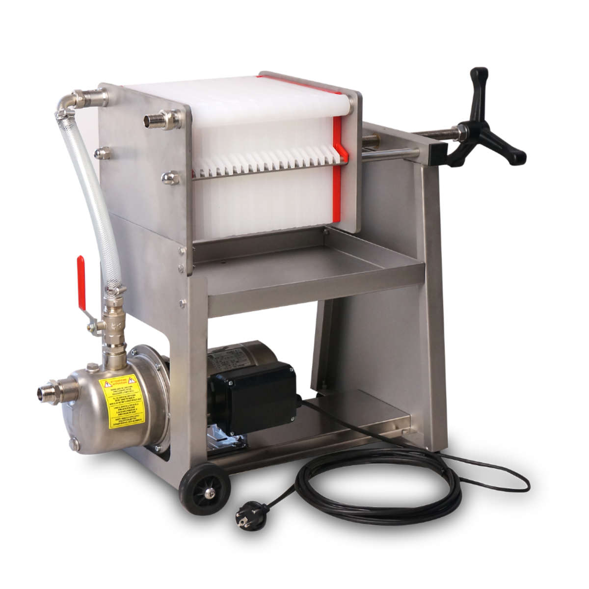 Filtr płytowy Zambelli ENOTECH z korpusem wykonanym ze stali nierdzewnej. Jest to porządny filtr dedykowany dla małych ale profesjnalnych producentów - z bardzo dobrą pompą. Części pompy mające kontakt z płynem także wykonane są ze stali nierdzewnej. charakterystyka filtra: