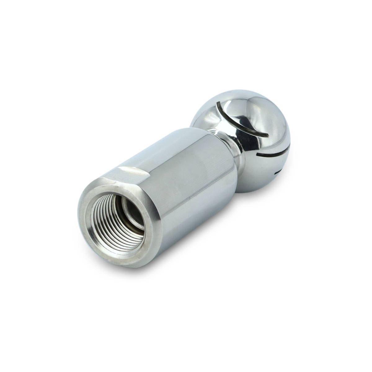 Profesjonalna głowica ze stali nierdzewnej 1.4301 (AISI 304), przeznaczona do efektywnego płukania zbiorników, beczek i przewodów w warunkach umiarkowanego obciążenia chemicznego.