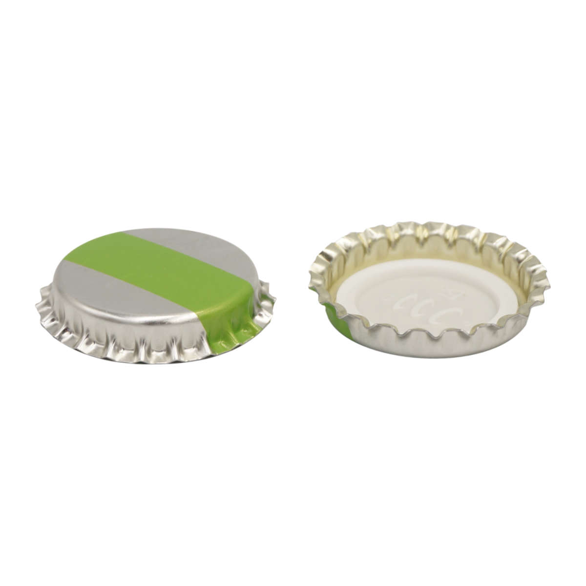 Kapsle 29 mm srebrne z jasnozielonym paskiem