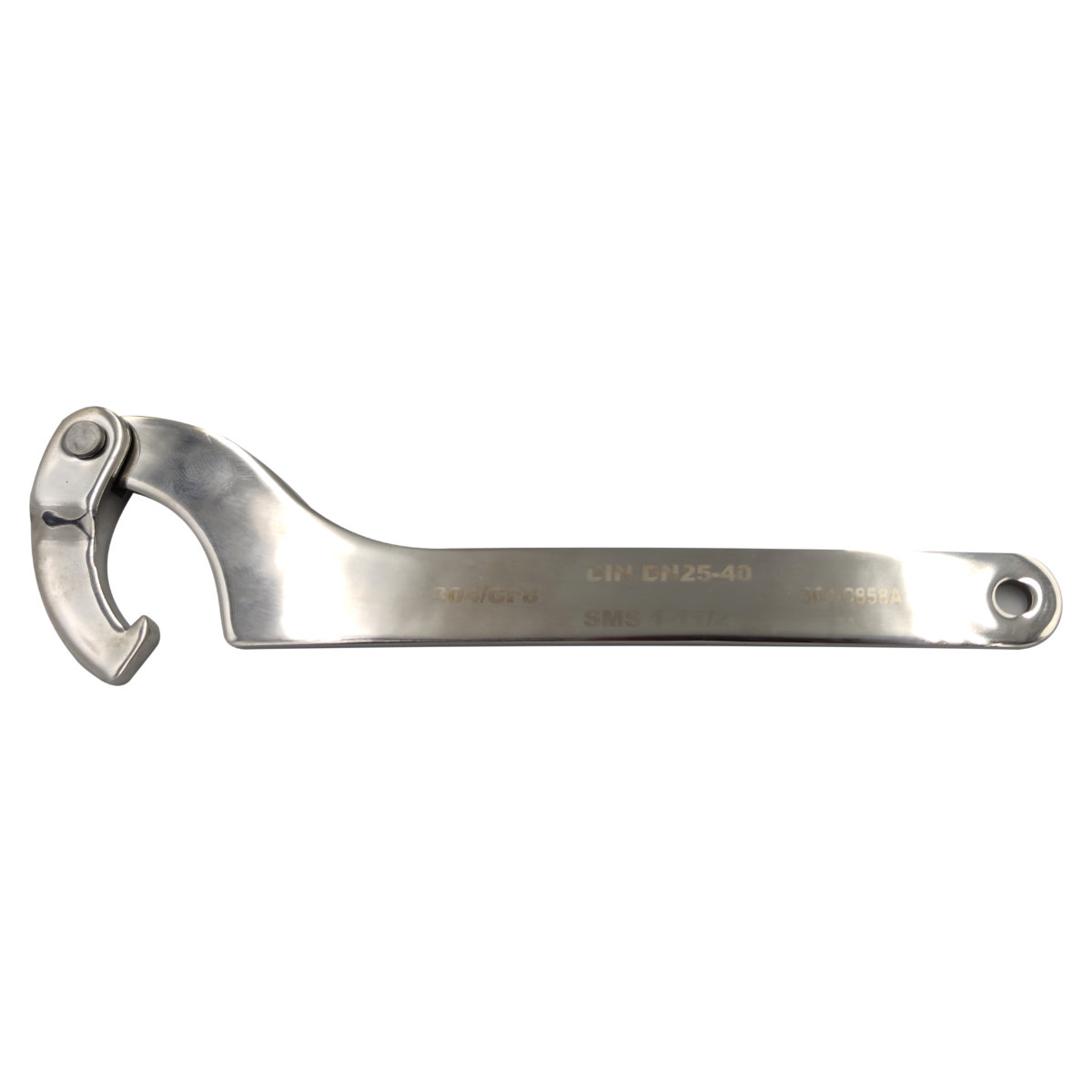 Ruchomy hak – dostosowuje się do różnych średnic, eliminując potrzebę posiadania wielu narzędzi Uniwersalne zastosowanie – kompatybilny zarówno z złączami DIN11851, jak i SMS ✔ Stal nierdzewna AISI 304 – odporność na korozję i środki czyszczące ✔ Gładkie, polerowane wykończenie – łatwe utrzymanie w czystości i higieniczne ✔ Ergonomiczny uchwyt – wygodny i pewny chwyt podczas pracy ✔ Uniwersalność – idealny do pracy z złączami w przemyśle spożywczym, farmaceutycznym i chemicznym