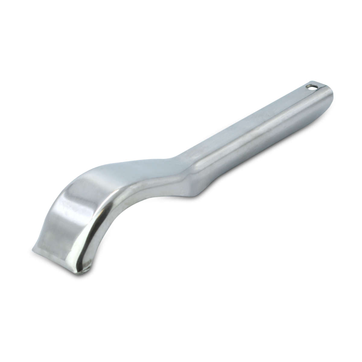 Wytrzymały klucz hakowy wykonany ze stali nierdzewnej AISI 304, przeznaczony do pracy ze złączami higienicznymi zgodnymi ze standardem DIN11851 oraz SMS.
