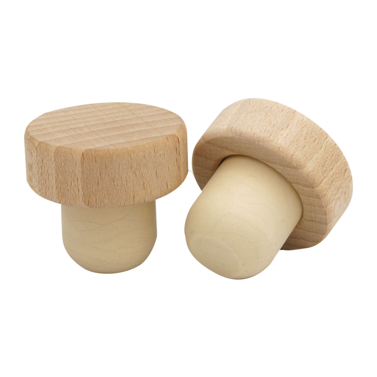 Korek z drewnianą główką i syntetycznym trzpieniem o średnicy 22,5 mm, który pasuje do większości dostępnych na rynku butelek.