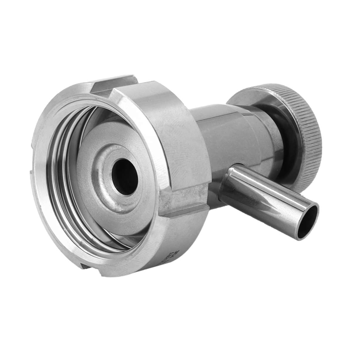 Praktyczny kranik probierczy przeznaczony do pobierania próbek cieczy ze zbiorników fermentacyjnych wykonanych ze stali nierdzewnej.