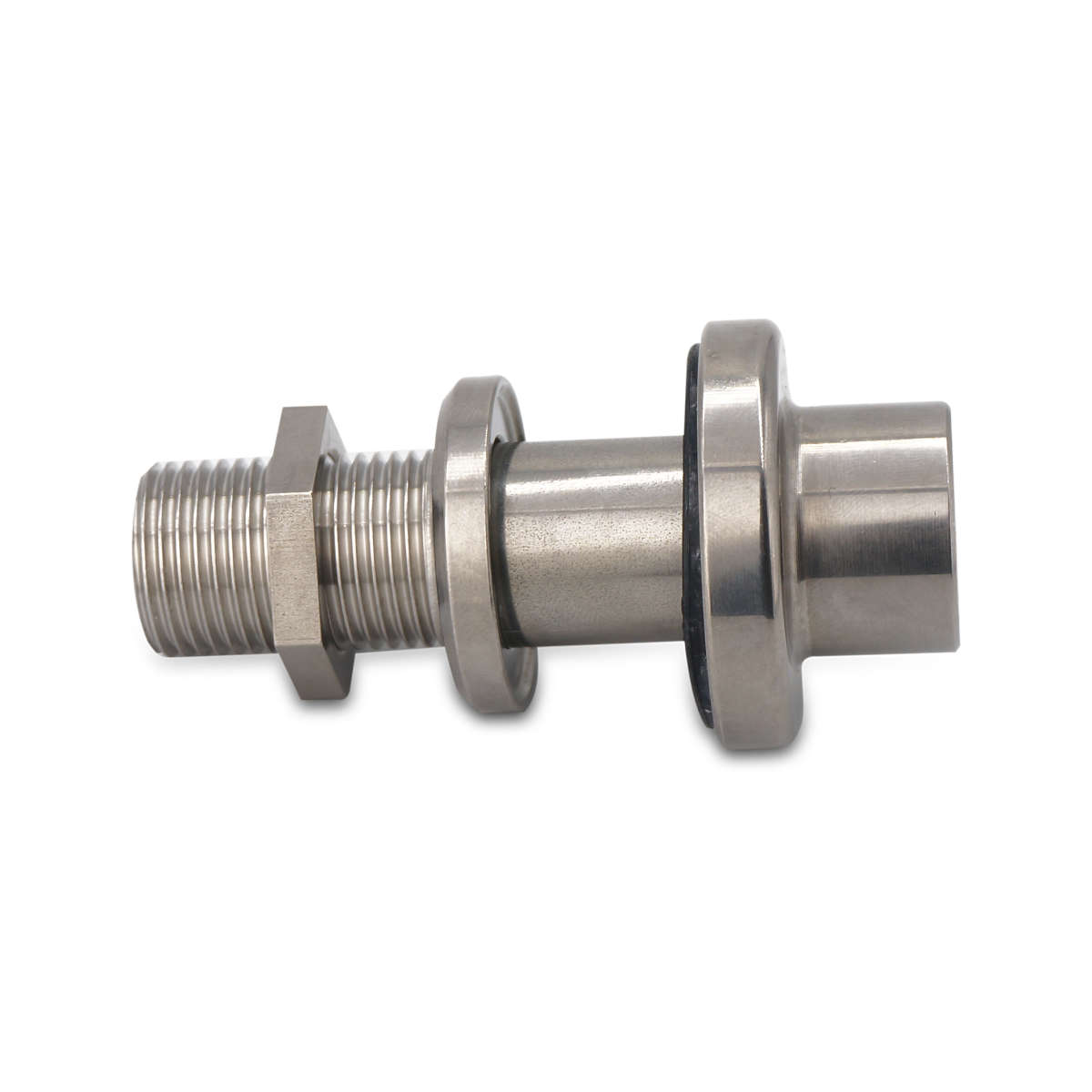 Solidny adapter ze stali nierdzewnej AISI 304, umożliwiający bezpieczne zamontowanie armatury w beczce – np zaworów, końcówek do węży itp.