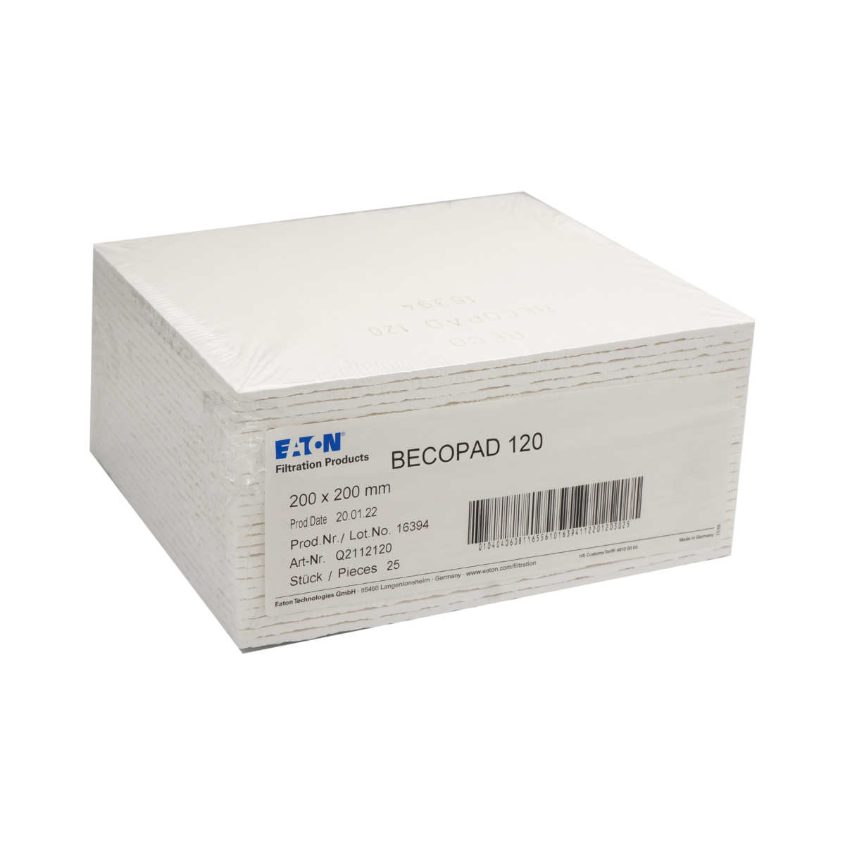 Płyty filtracyjne Eaton Becopad 120 (0,1-0,3 u)/ 20×20 cm 25 szt.