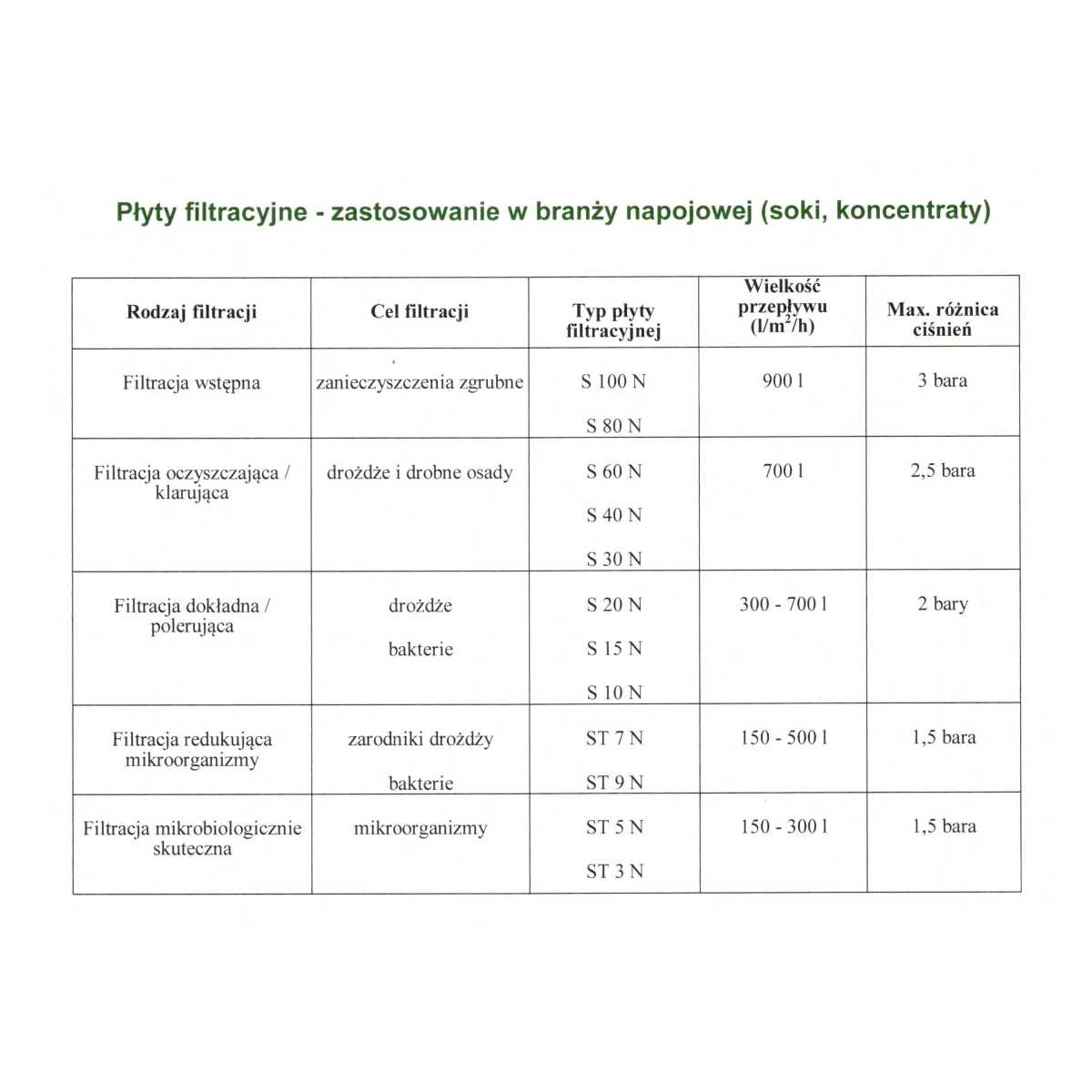 – przestrzeganie zalecanych wydajności (l/m2/h) i maksymalnej dopuszczalnej różnicy ciśnień (jak przedstawiono w tabelkach dla określonych branż)