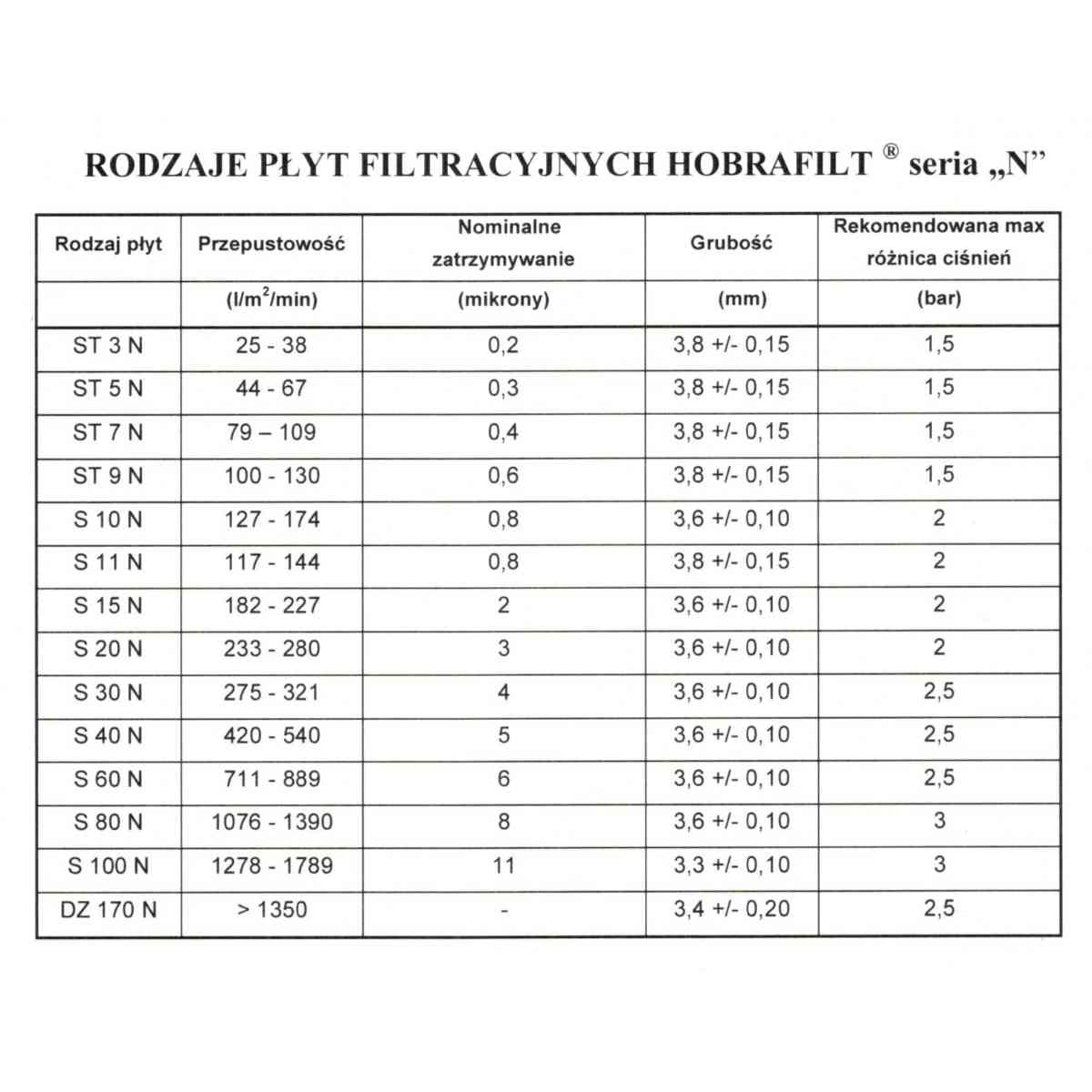 Płyty filtracyjne HOBRAFILT S60 N (przepustowość 6 u)to gwarancja neutralnego charakteru filtrowanych cieczy i wysokiej skuteczność filtracji.
