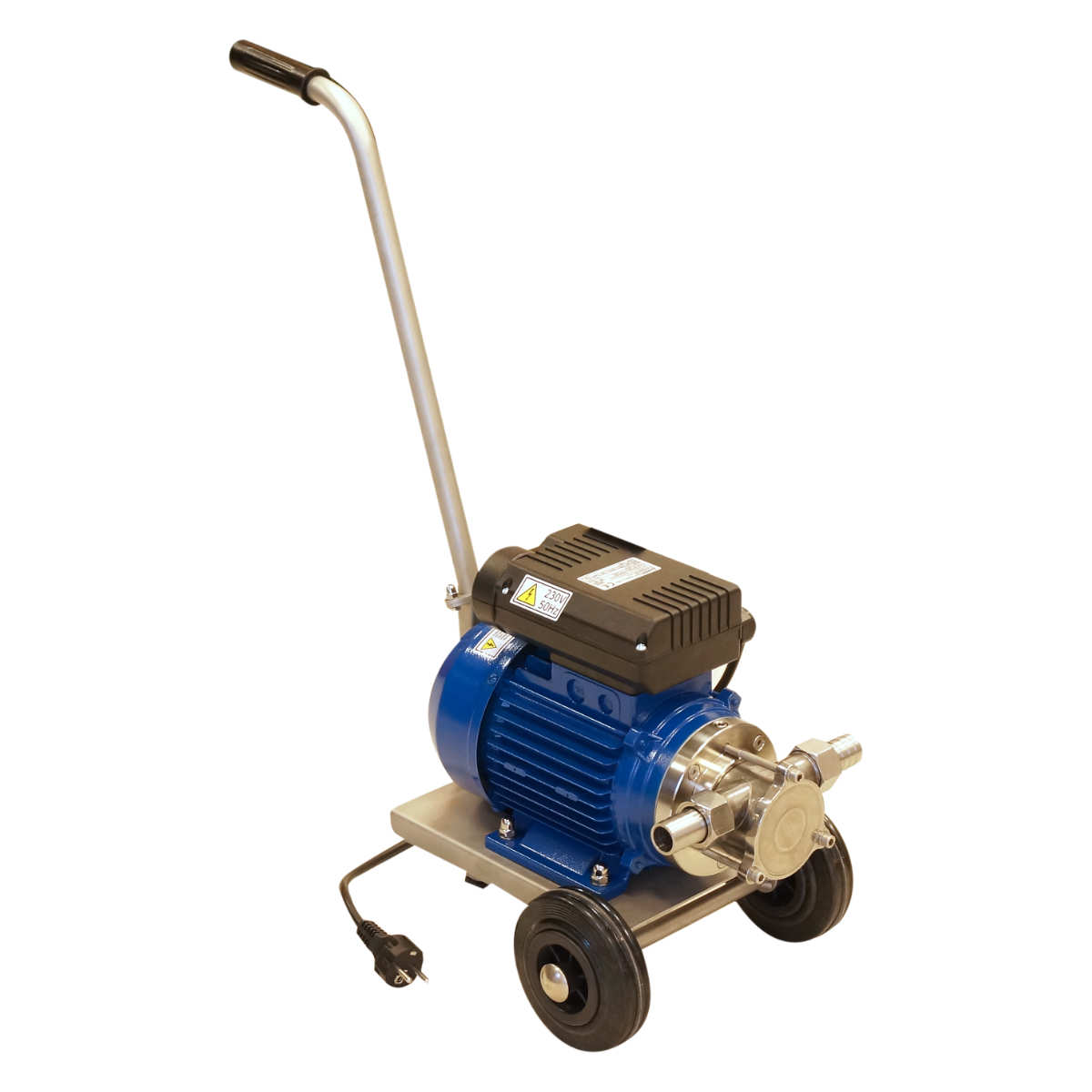Pompa jest osadzona na wózku dla łatwiejszego przemieszczania.
