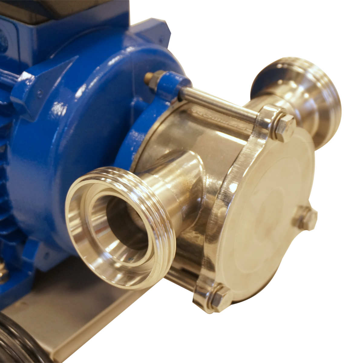 Korpus pompy wykonany jest ze stali nierdzewnej AISI304 z przyłączami 40 mm zgodnymi ze standardem DIN11851.