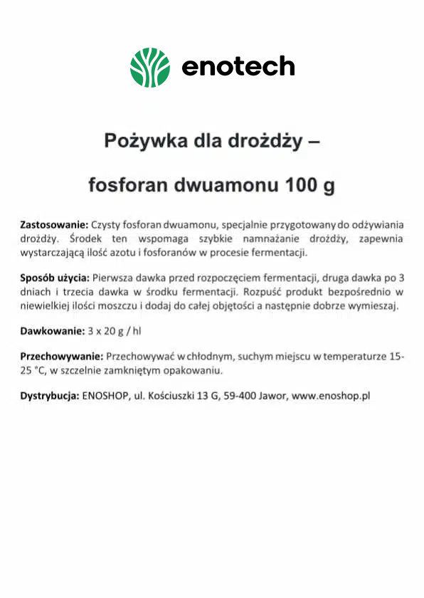 - instrukcja stosowania: rozpuścić w niewielkiej ilości zimnej wody lub moszczu i dokładnie wymieszać z nastawem