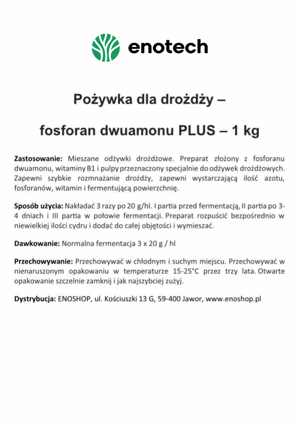 - Rodzaj pożywki: kombinowana (DAP + witamina B1 + celuloza)