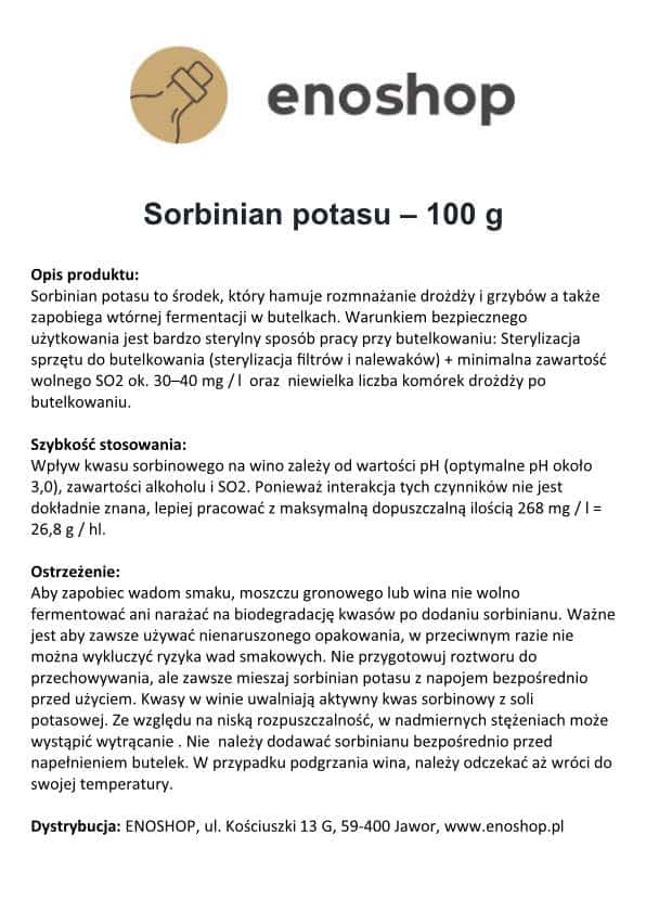 Sorbinian potasu (E202) to skuteczny środek konserwujący stosowany w winiarstwie do zabezpieczenia gotowych win przed wtórną fermentacją oraz rozwojem drożdży i pleśni po butelkowaniu. Działa poprzez hamowanie rozmnażania mikroorganizmów, nie wpływając przy tym na aromat ani barwę wina — przy zachowaniu prawidłowych warunków higienicznych. To niezastąpiony produkt w procesie stabilizacji win słodkich i półsłodkich, które zawierają cukier resztkowy i są szczególnie narażone na ponowną fermentację w butelce. Sorbinian potasu zapewnia spokój i bezpieczeństwo przechowywania oraz utrwala charakter wina taki, jaki nadał mu winiarz.