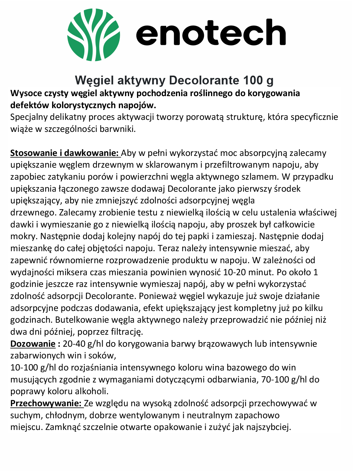 Węgiel aktywny DECOLORANTE 100 g – do klarowania i korekty barwy wina