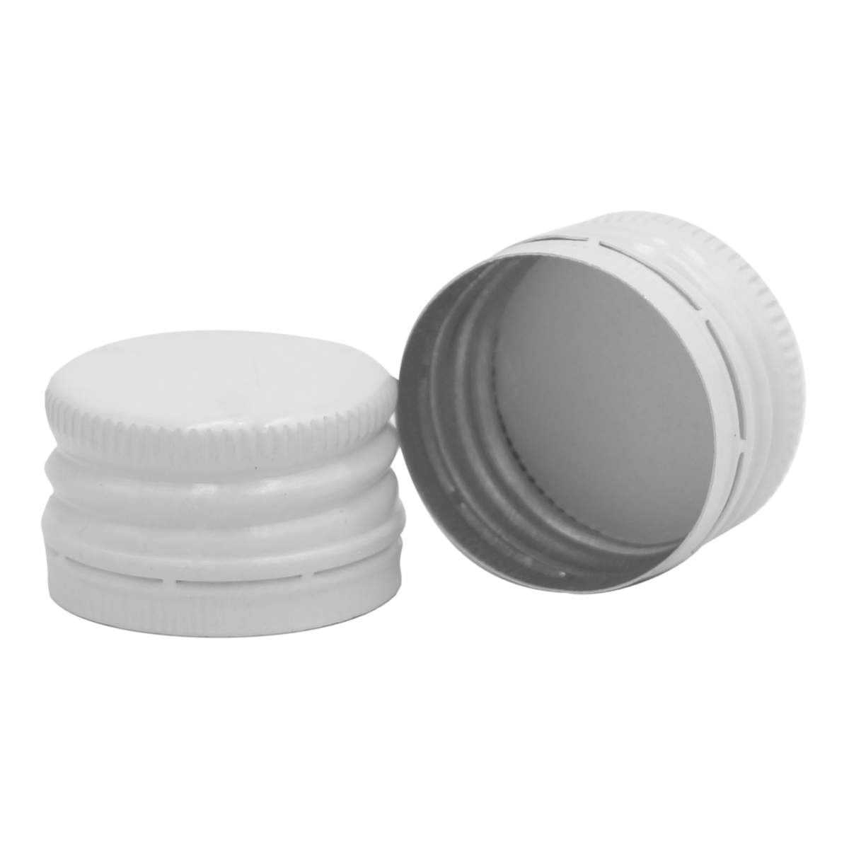 Zakrętka aluminiowa o wymiarach 28 x 18 mm dedykowana do butelek w kolorze białym.