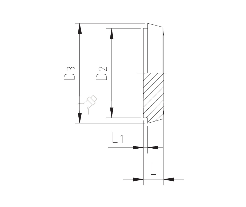Średnica zewnętrzna rantu D2: 61 mm Średnica zewnętrzna stożka D3: 68,5 mm Długość całkowita L: 14,5 mm Długość L1: 3,5 mm Stal nierdzewna z gatunku 1.4307 charakteryzuje się dużą odpornością na ogólną korozję, przez co doskonale nadaje się do stosowania przy produktach spożywczych i alkoholach. Do pracy przy agresywnych środkach chemicznych zalecamy wybór stali kwasoodpornej z gatunku 1.4404 (AISI 316L).