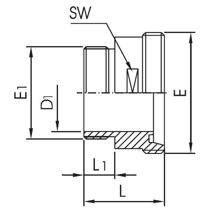 - Gwint zewnętrzny: E1 =1 ¼” (1 ¼ cala)