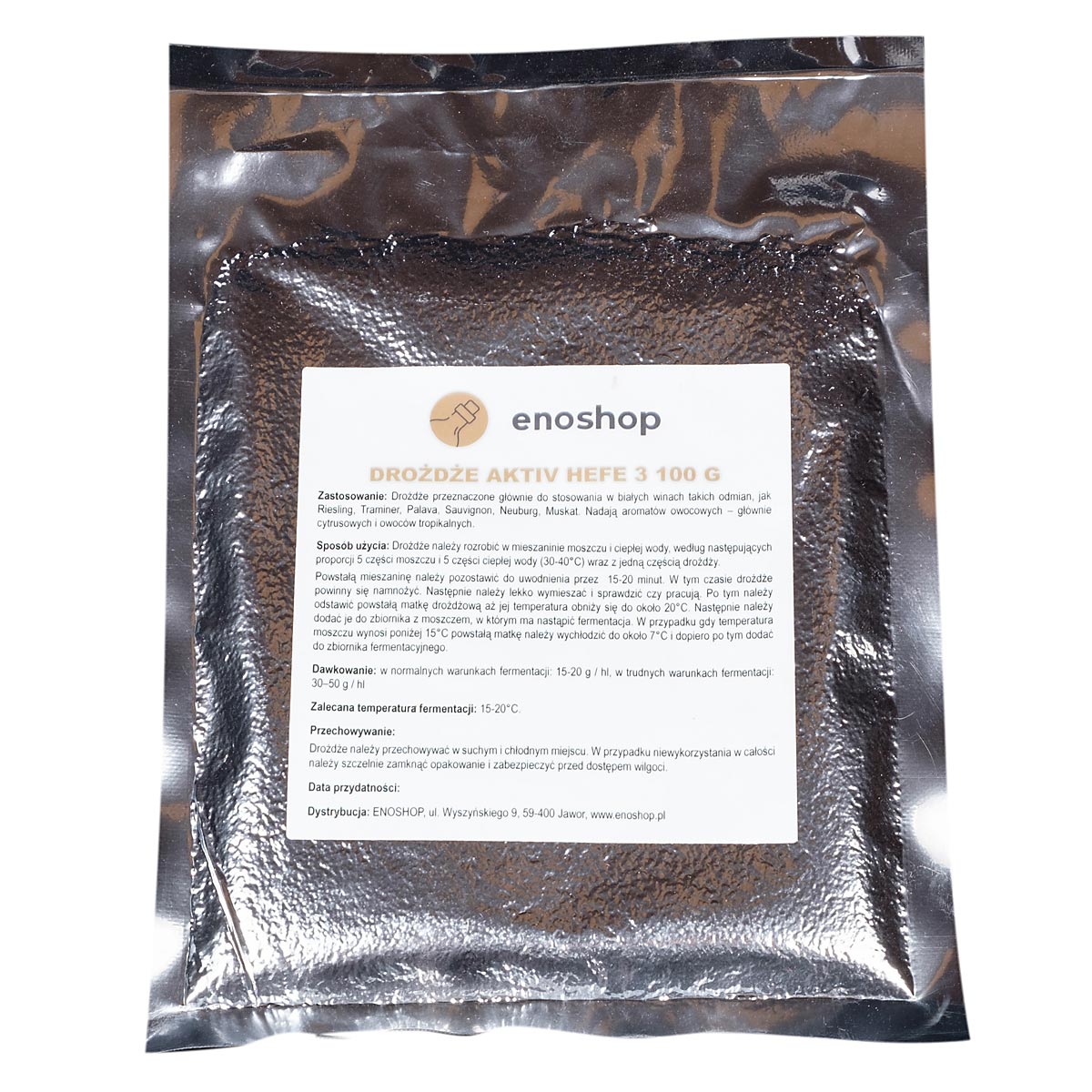 restart fermentacji: 30–60 g/hl (opakowanie 20 g wystarcza na 30–65 l moszczu)