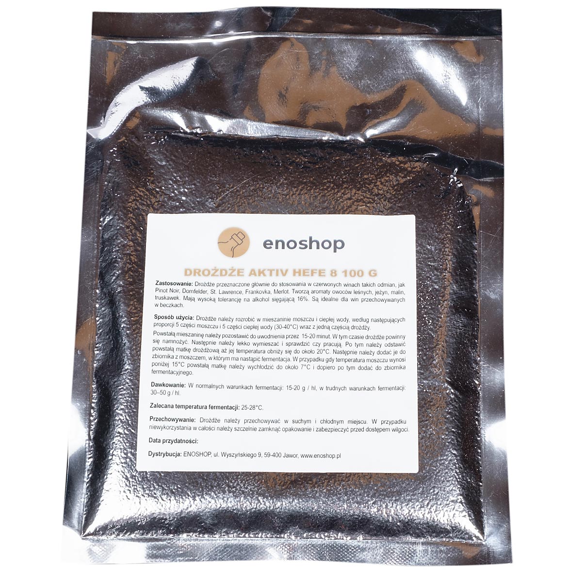 Aktiv Hefe 8 to suche, aktywne drożdże opracowane z myślą o fermentacji win czerwonych oraz owocowych . Zapewniają szybki start fermentacji, stabilny jej przebieg oraz minimalne powstawanie produktów ubocznych (takich, jak SO₂, H₂S, aldehyd octowy, lotne kwasy). Dzięki wieloletniej selekcji ograniczają straty barwy w trakcie fermentacji, co pozwala uzyskać wina o intensywnym kolorze, czystym aromacie i pełnym smaku.