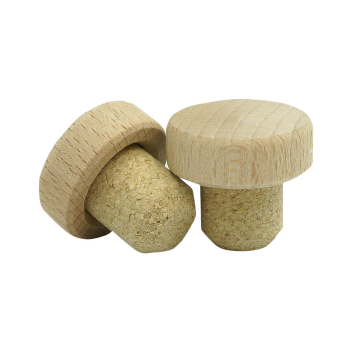 Korek z drewnianą główką i naturalnym trzpieniem o średnicy 19,5 mm, który dedykowany jest do butelki Pharma. Pasuje także do innych butelek, które mają szeroki ustnik i wąską szyjkę o średnicy około 18,5 mm.