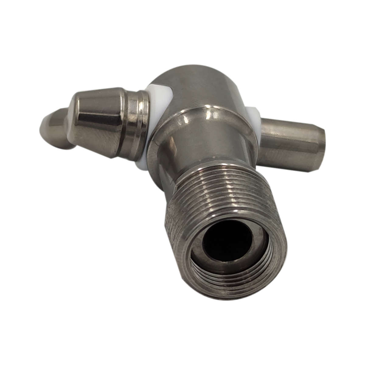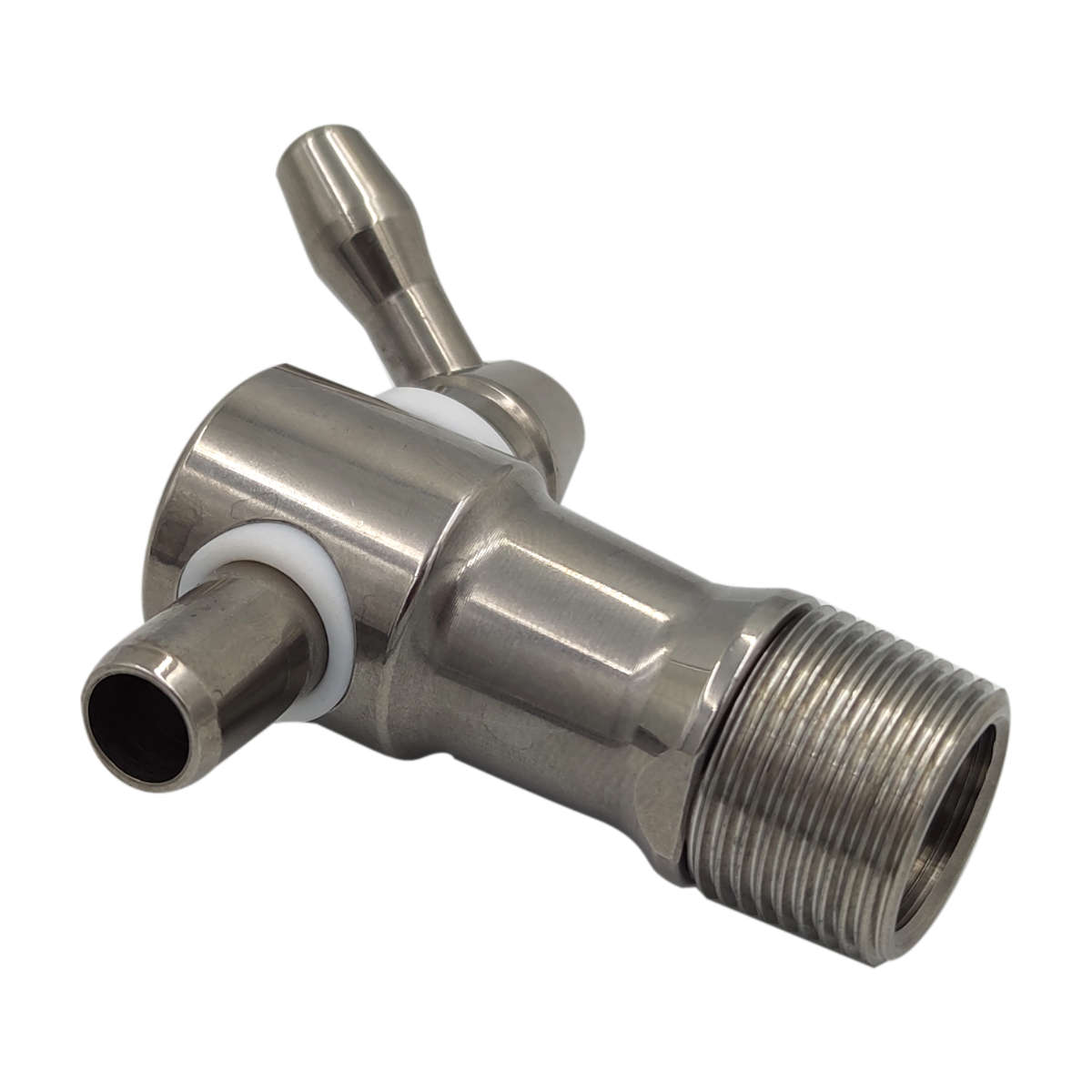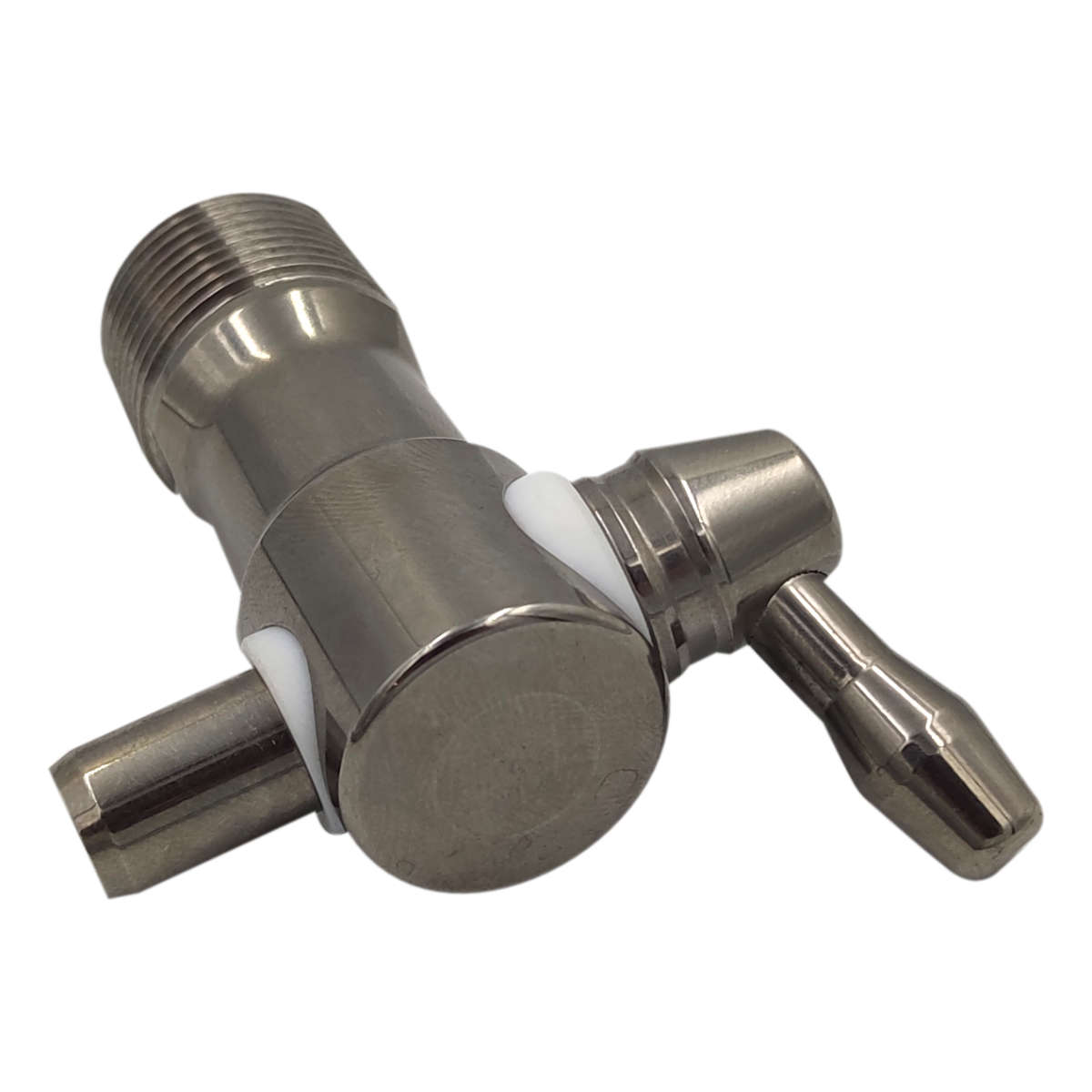 Oferowany kranik dedykowany jest do beczek drewnianych - zakończony jest gwintem stożkowym. Ze względu na niewielką średnicę wewnętrzną oraz brak drugiego przyłącza, jego głównym zastosowaniem jest pobieranie próbek. Kierunek montażu z perspektywy przyłącza: poziomy Średnica gwintu 1: 21 mm Średnica gwintu 2: 22 mm Długość gwintu: 15 mm Skok gwintu: 1,5 mm Średnica wewnętrzna: 8 mm Długość pokrętła (od osi obrotu): 25 mm Długość całkowita (bez pokrętła): 60 mm Średnica zewnętrzna (z przodu): 23,5 mm Kąt obrotu rączki: 360° Pozycja otwarta: w przód Stal nierdzewna z gatunku 1.4301 charakteryzuje się dużą odpornością na ogólną korozję, przez co doskonale nadaje się do stosowania przy produktach spożywczych i alkoholach.
