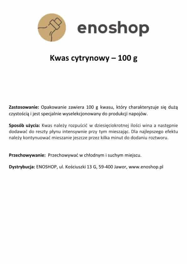Kwas cytrynowy 100 g– środek dezynfekujący i neutralizujący do sprzętu winiarskiego, piwowarskiego i cydrowniczego