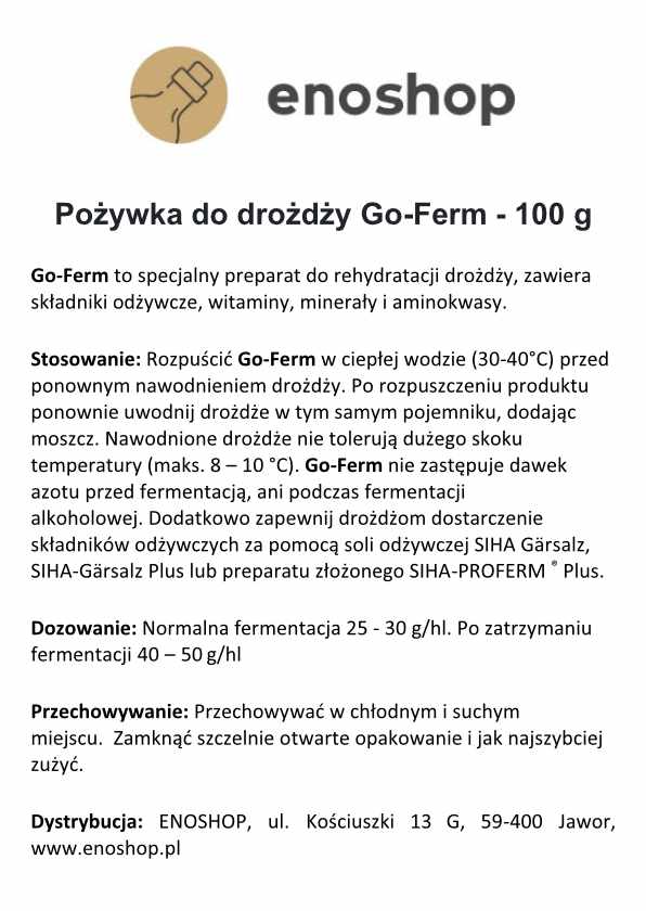 GO-FERM Protect Evolution to specjalistyczna, naturalna pożywka, przeznaczona do stosowania podczas rehydratacji drożdży winnych. Powstaje w procesie autolizy drożdży, dzięki czemu zawiera wysokie stężenie witamin (m.in. biotyna, witamina B5), minerałów (magnez, cynk, mangan) oraz steroli i aminokwasów. Zastosowanie GO-FERM już na etapie uwadniania drożdży poprawia ich żywotność i zdolność do pełnego odfermentowania, minimalizując ryzyko powstawania siarkowodoru (H₂S), kwasowości lotnej i innych wad fermentacji. Produkt zdobył Złoty Medal za innowację w enologii na targach Intervitis 2004, a jego skuteczność potwierdzają liczne wdrożenia w profesjonalnym winiarstwie.
