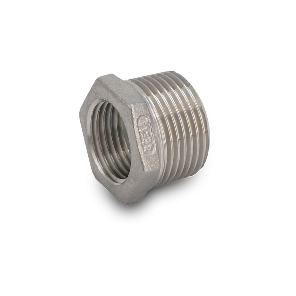 Redukcja posiada gwint zewnętrzny o długości około 14 mm i rozmiarze 3/4″ oraz gwint wewnętrzny o długości około 10 mm i rozmiarze 1/2″. Wykończenie powierzchni: surowe.