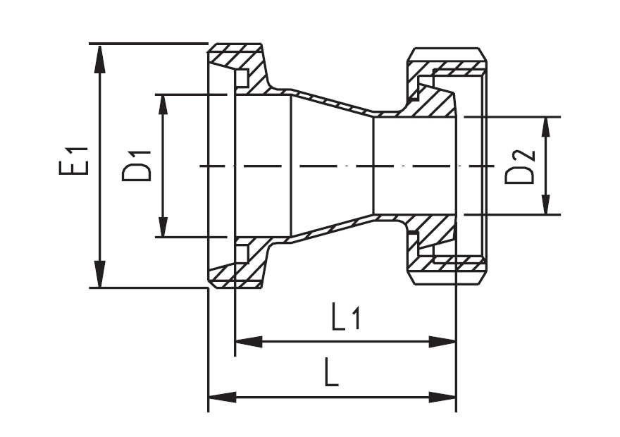 Redukcja DIN 11851 DN32/25 (gwint/stożek+nakrętka)