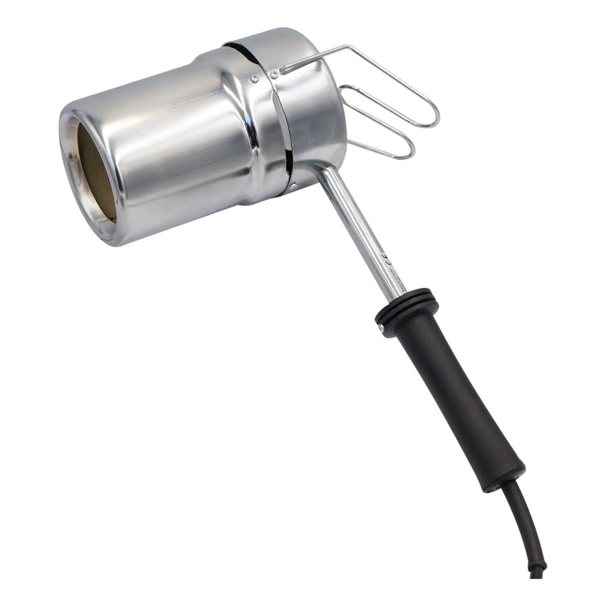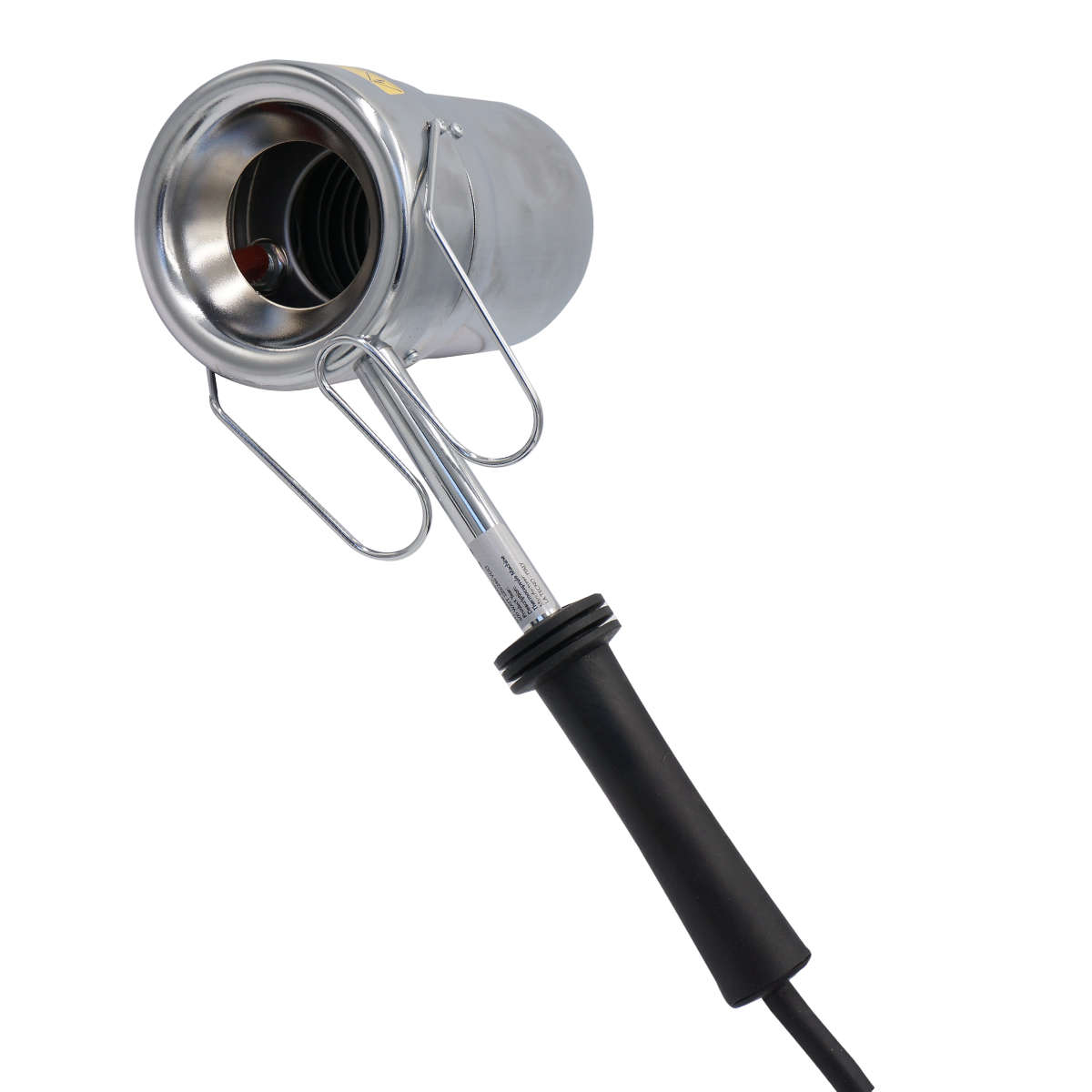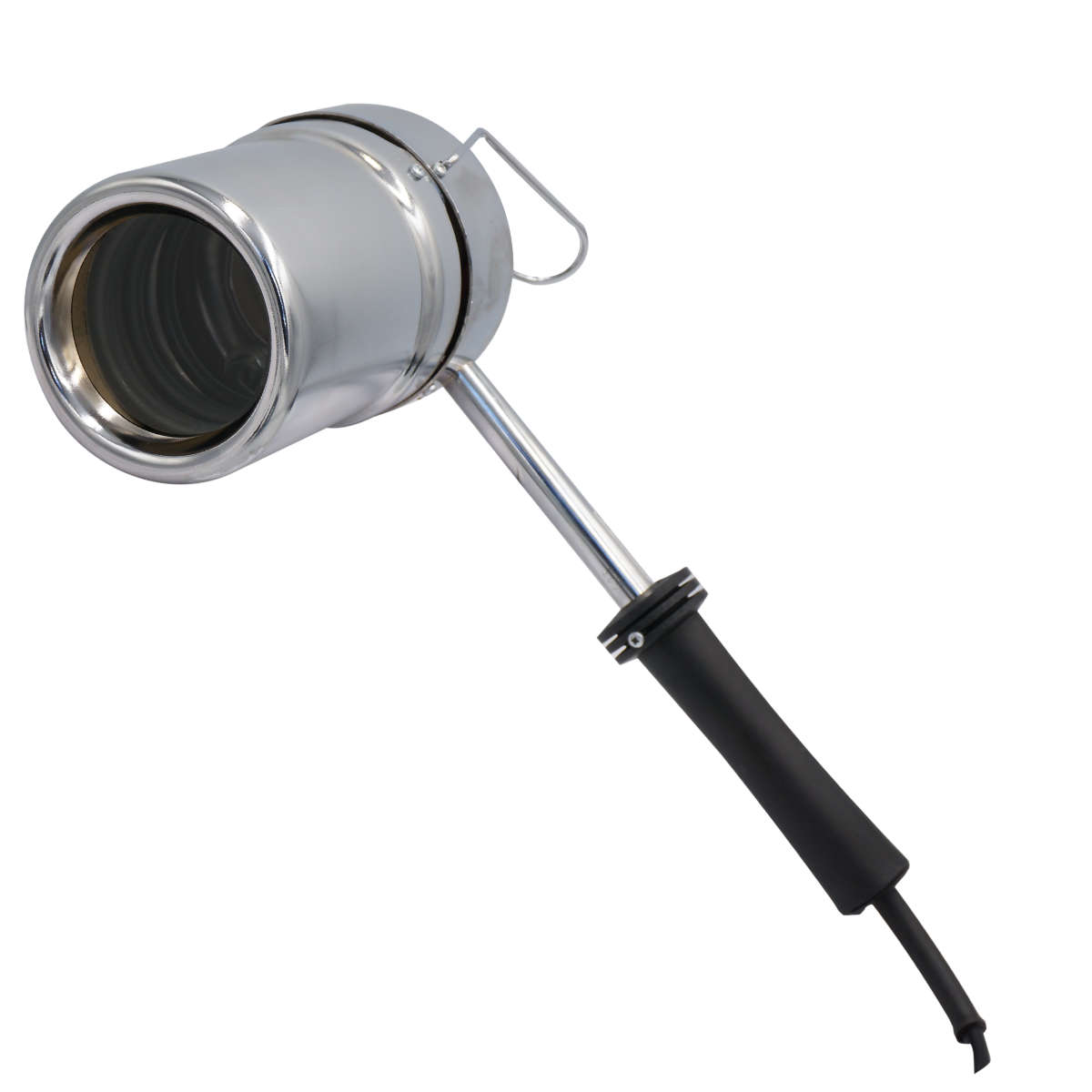Termoobtapiarka - obkurczarka to najprostszy model, który służy do zgrzewania kapturków termokurczliwych na butelce. Zaletą jej jest szybkość zgrzewania i idealne dopasowanie do szyjki butelki. Wyposażona jest w stojak do bezpiecznego chłodzenia maszyny po jej użyciu. Informacje techniczne: Napięcie: 230 V Moc: 600 W