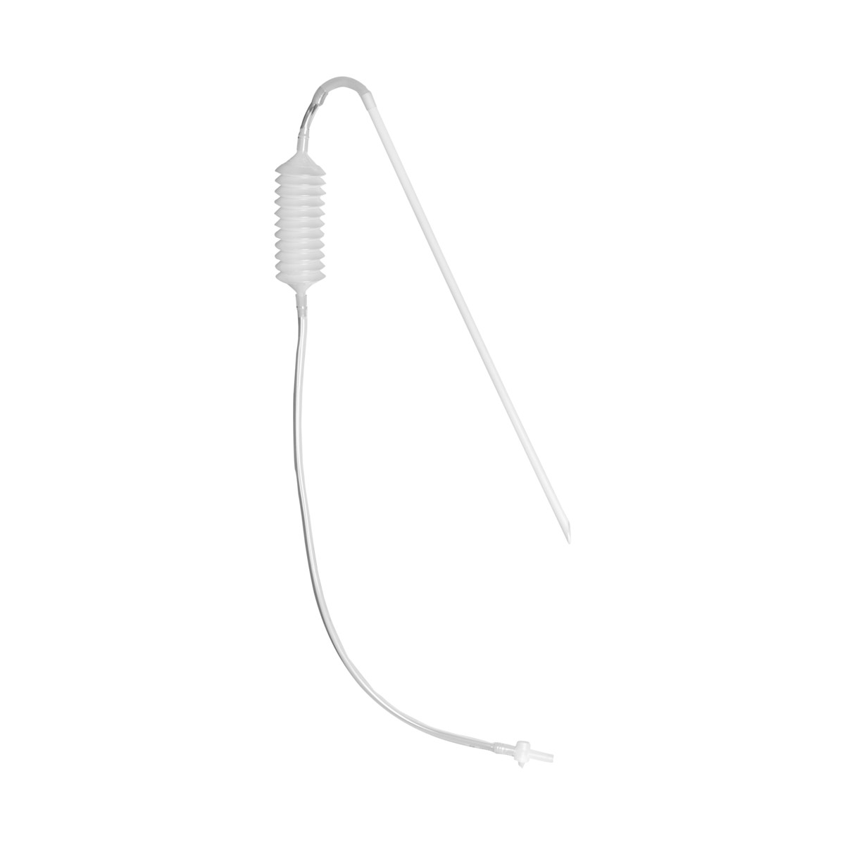 Wężyk ma jedną końcówkę sztywną i dzięki temu można ściągnąć wino z samego dna balona – wężyk nie wygina się w tym miejscu.