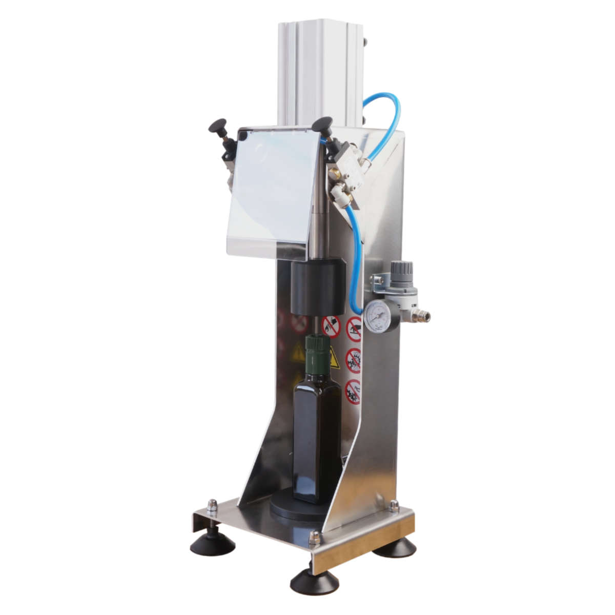 Idealna do nowoczesnych zamknięć click-on – doskonale sprawdza się w zamykaniu butelek z olejami, octami, sokami, a także innymi produktami spożywczymi. To urządzenie, które realnie zmienia komfort pracy – precyzja i profesjonalny wygląd gotowego produktu robią różnicę nie tylko dla Ciebie, ale i dla Twoich klientów. Maszyny te są porządnie wykonane z wysokogatunkowej stali nierdzewnej AISI 304 oraz elementów tworzyw sztucznych. CHARAKTERYSTYKA URZĄDZENIA: waga: 10 kg zasilanie: sprężone powietrze min. 6 bar wymiary: 22x27x75