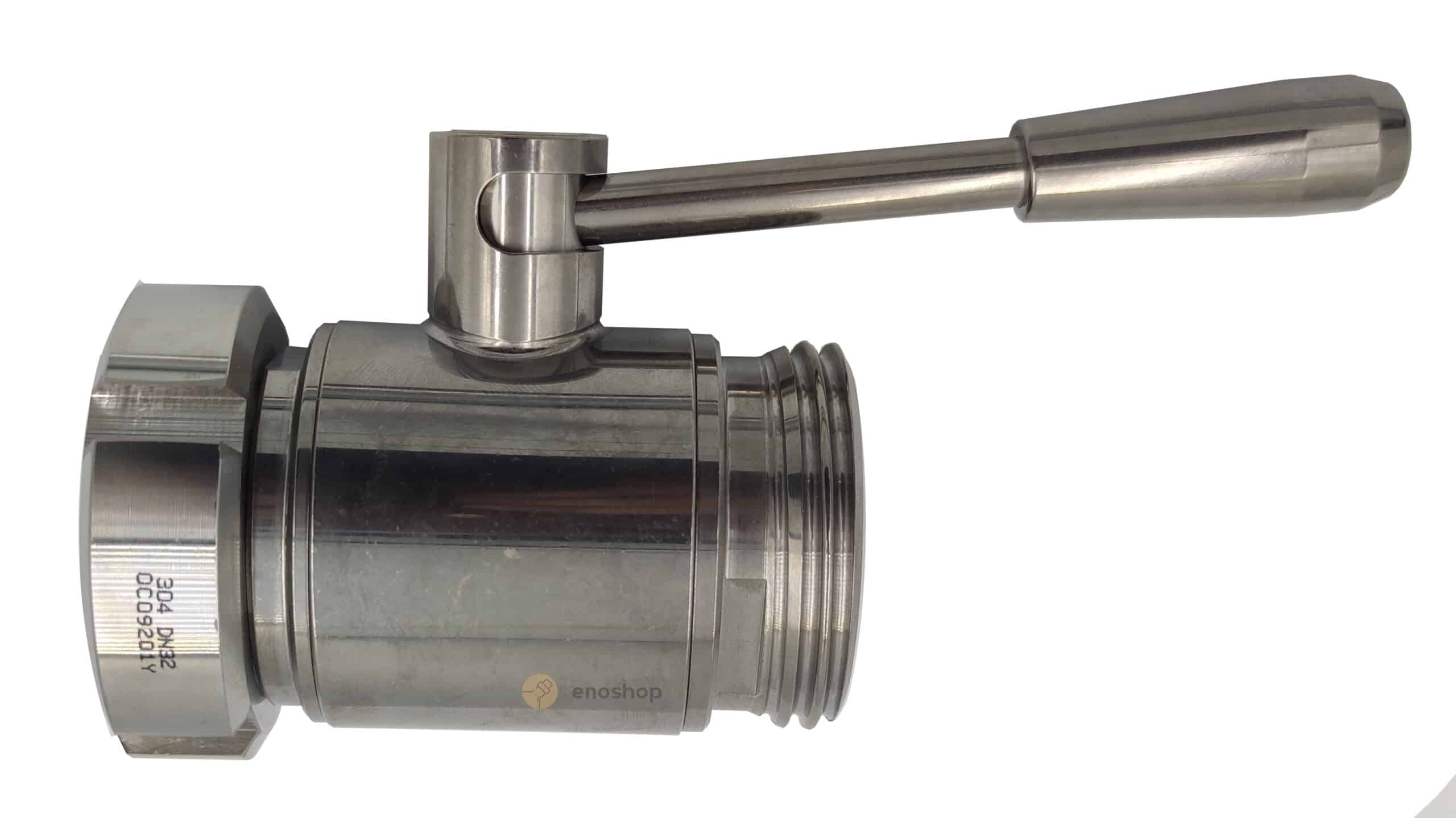 Oferowany zawór z przyłączami w standardzie DIN11851 został w całości wykonany ze stali nierdzewnej AISI304. Kąt obrotu rączki to 180°, dzięki czemu zawór ma dwie pozycje zamknięte i jedną otwartą (w stronę gwintu zewnętrznego).